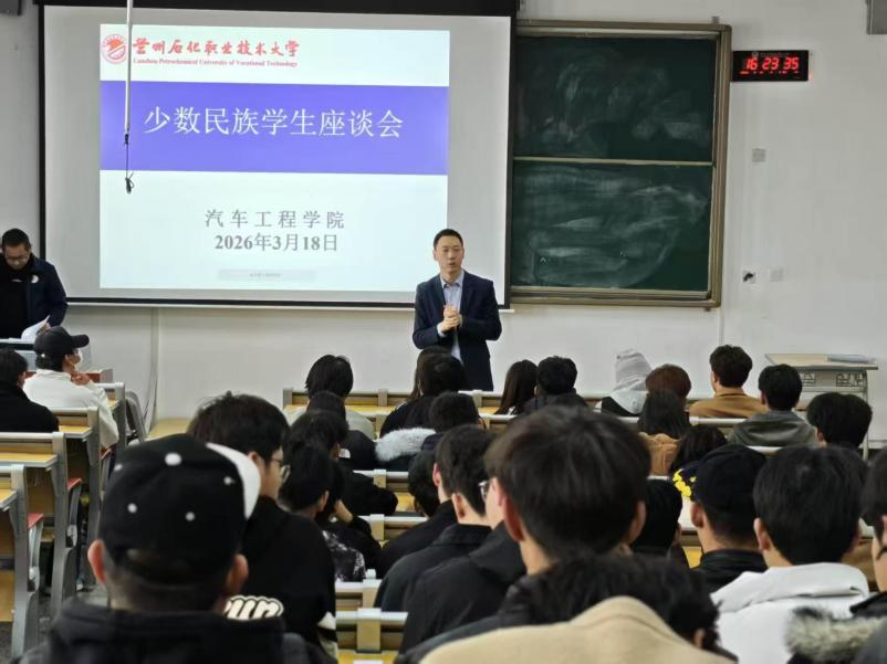 为深入贯彻党的民族政策,铸牢中华民族共同体意识,精准摸排少数民族学生学习生活诉求,提升学生管理服务质效,2026年3月18日,汽车工程学院召开少数民族学生专题座谈会。学院相关负责人及全体辅导员参会,与各民族学生代表面对面交流、心贴心沟通,现场氛围坦诚融洽、暖意融融。